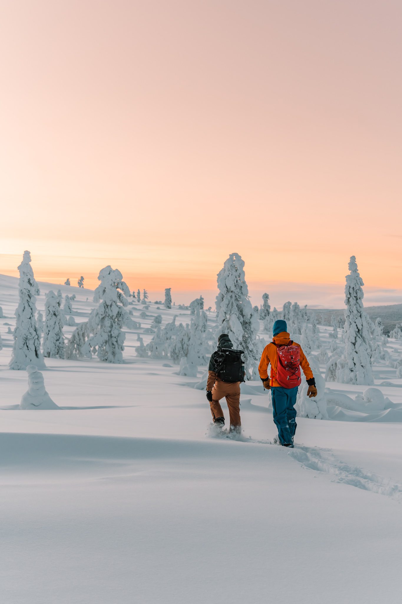 De routes voeren je dwars door met sneeuw bedekte bossen en langs adembenemende uitzichten. Even opwarmen of bijtanken? Maak een stop bij een knus wilderniscafé of kies een open plek in de natuur om in stilte van de omgeving te genieten. Een unieke manier om Lapland op een sportieve en ontspannen manier te verkennen!